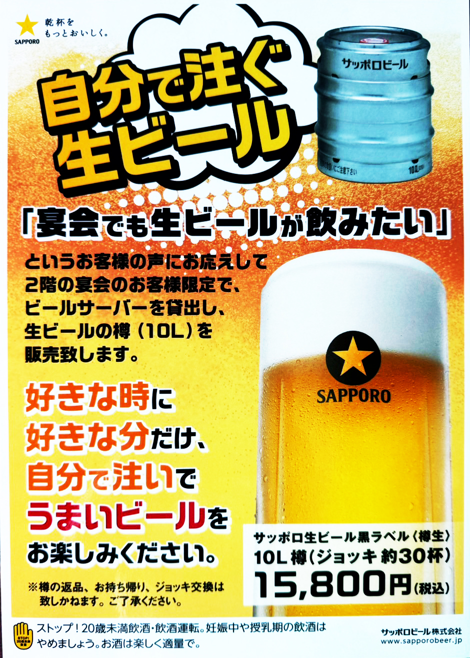 料理は2,800円(税込)〜のお得なセットやイベント用ビールサーバもご用意でき、