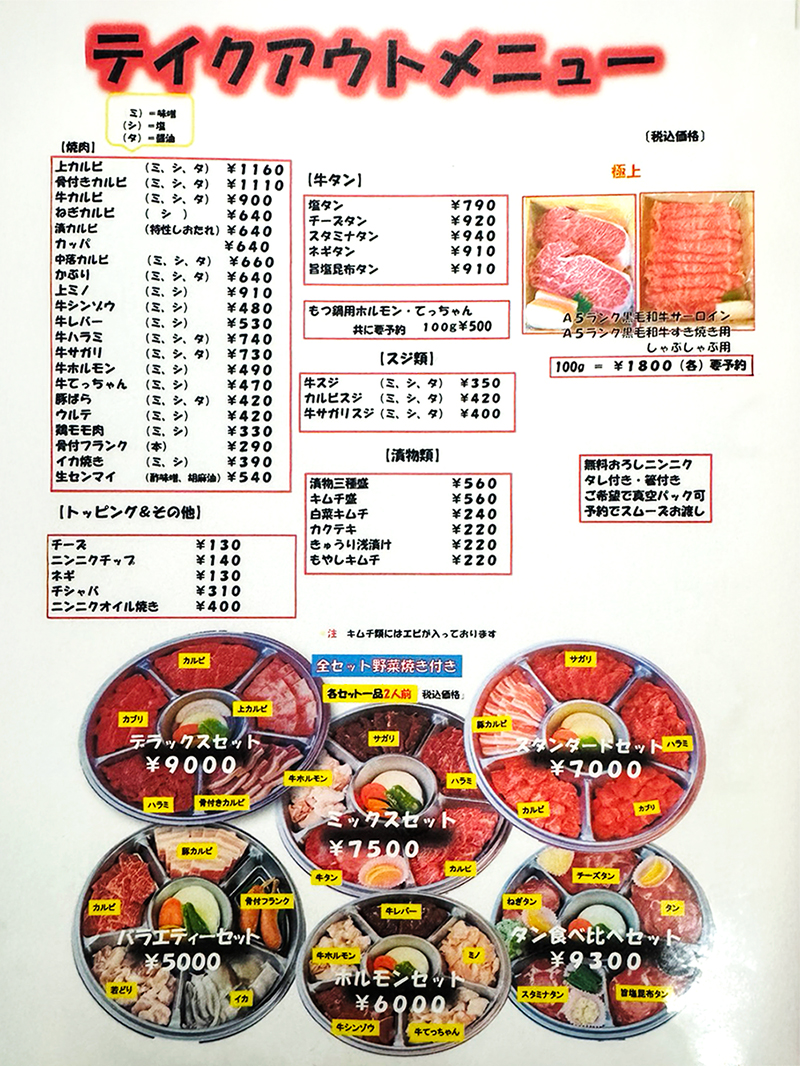 テイクアウト/愛知県あま市甚目寺の昭和の焼肉 焼肉山ちゃん/美味しいお肉のテイクアウトです!是非ご家庭でご賞味ください。